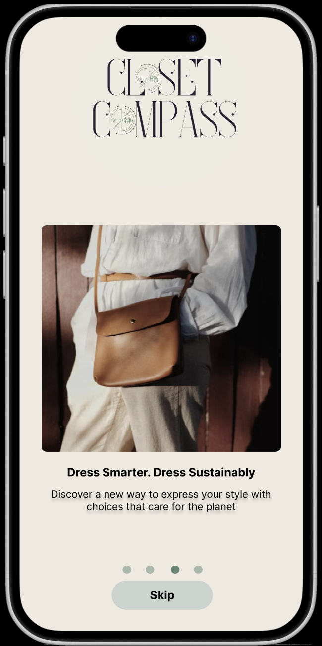 Closet Compass is a sustainable fashion advice app designed to help users make smarter, eco-friendly wardrobe decisions.